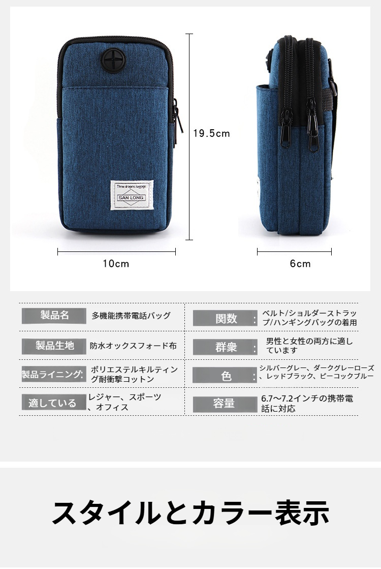 大容量防水オックスフォード布スマホポーチ・小銭入れ